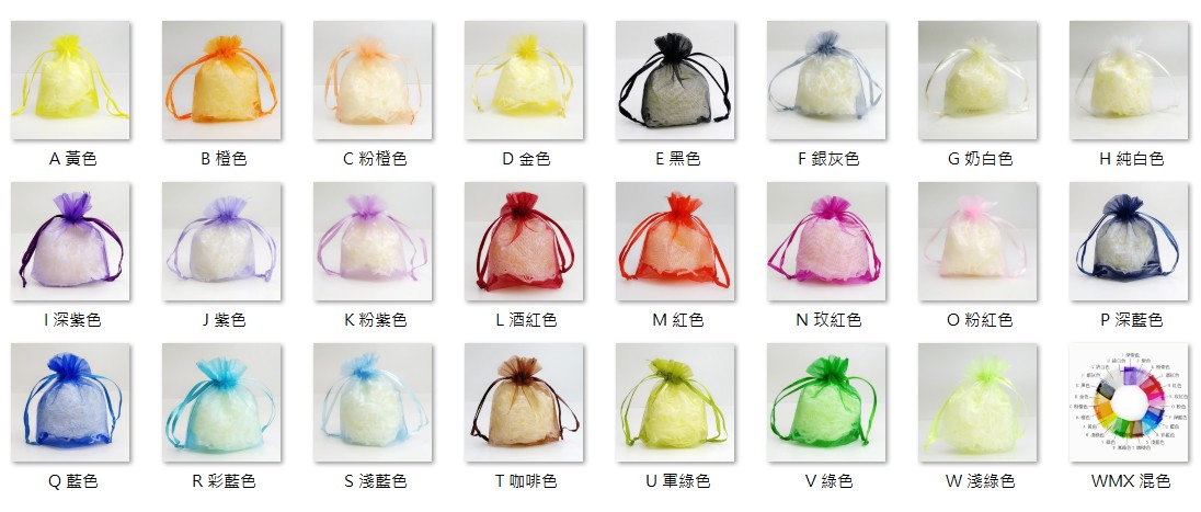 產品顏色 : (圖示為 多個紗袋重疊 顯示..